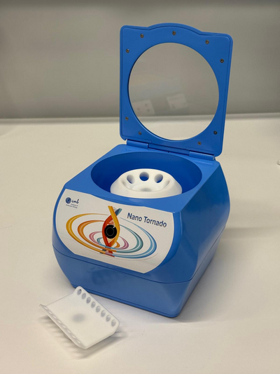 The NanoTornado is a powerful yet compact device that has been developed to make your laboratory work more efficient and enjoyable. It combines state-of-the-art technology with intuitive operation, allowing you to concentrate fully on your experiments. The intelligent speed control automatically adjusts to the requirements of your samples, delivering optimal results without cumbersome settings. At the same time, several integrated protective functions ensure that your samples, the device and you are optimally protected at all times. Experience the next level of centrifugation: fast, precise and reliable. Let yourself be carried away by the power of the NanoTornado and discover how exciting laboratory technology can be!