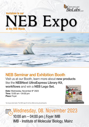 Visit their booth to learn more about new products like the NEBNext UltraExpress Library Kit and workflows and win an NEB Lego Set.